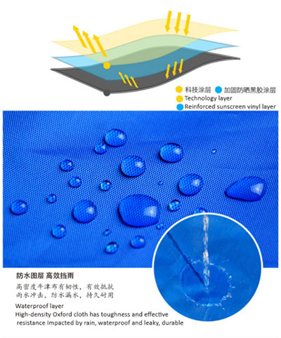 O tecido Oxford de alta densidade tem dureza e resistência efetiva, não sendo afetado por chuva, água e vazamento.
